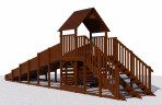 • Сооружение двухуровневой башни, изготовленная из клееного бруса 70х70 мм, и собранная с помощью хромированной фурнитуры будет долго служить Вашим детям, и украшать собой дачный участок, двор многоэтажек или территорию детского сада, школы.