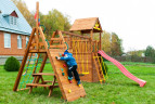 Сухая северная древесина, скалодром, даже капитанский мостик и множество других развлечений! Что ещё нужно для небольшой площадки?