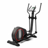 Эллиптический тренажер с задним расположением маховика для домашнего использования. Тренировка на эллиптическом тренажере - это прекрасная альтернатива бегу трусцой или ходьбе, с разницей в высоком сжигании калорий. Благодаря интенсивному движению рук верхние участки тела напрягаются, все тело укрепляется, повышается эффективность тренировки. Модель с удлиненной базой и бесшумной магнитной нагрузкой - система сопротивления с постоянным магнитом и тончайшей настройкой интенсивности. Электронная регулировка сопротивления с помощью компьютера. На тренажере установлен простой и современный компьютер с ЖК-дисплеем. Управление с помощью большой ручки „Push & Turn“. На дислее отображается весь необходимый список параметров тренировки. Измерение пульса осуществляется с помощью встроенных датчиков на дополнительных поручнях. Мощная рама тренажера, усиленная конструкция из стального профиля, позволит заниматься пользователю весом до 135 кг. Широкие педали с нескользящей вставкой. Транспортировочные колеса в передней части обеспечивают свободное перемещение тренажера по комнате. Задний стабилизатор с регулировкой положения на неровной поверхности. Показания консоли: время, расстояние, количество сожженных калорий, скорость, пульс, жироанализатор BodyFat, фитнес-тест Recovery