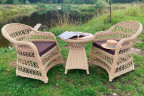 Кресла выполнены в стильном дизайне с имитацией плетения под искусственный ротанг. В отличие от плетеной мебели, имитация ротанга не расплетается и не вытягивается, надолго сохраняя привлекательный внешний вид.